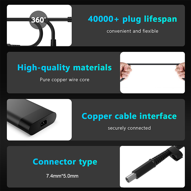 Our Laptop adapters use fire retardant materials,and obtained international and EU certification, with high temperature fire retardant ABS+PC plastic craft materials layers of quality inspecition process in case to use more durable