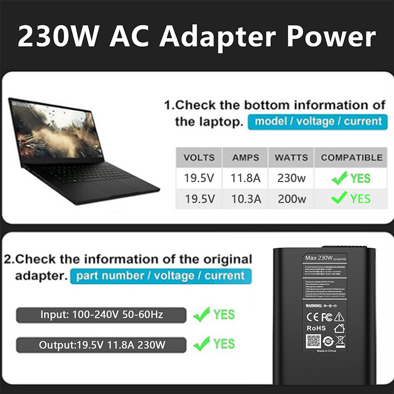 HP Laptop Charger Adapter 230W 19.5V 11.8A7.4*5.0mm
